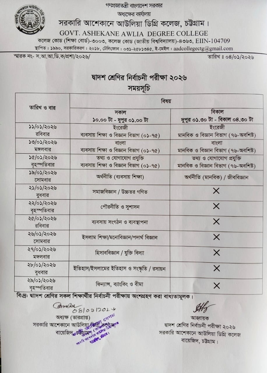 দ্বাদশ শ্রেণির নির্বাচনী পরীক্ষার রুটিন ২০২৬ |