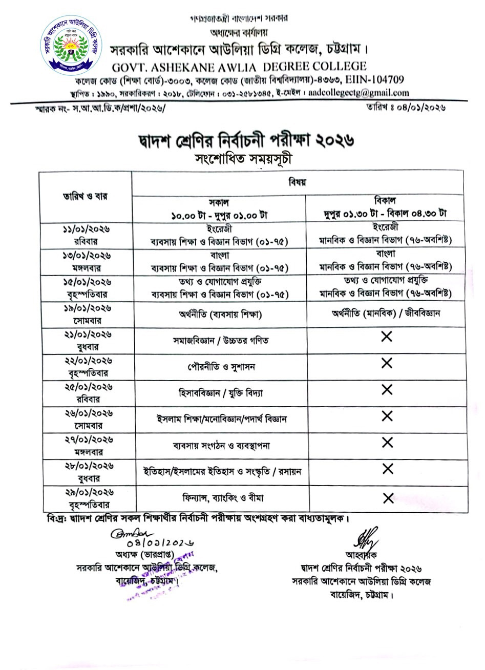 দ্বাদশ শ্রেণির নির্বাচনী পরীক্ষার রুটিন ২০২৬ সংশোধিত |